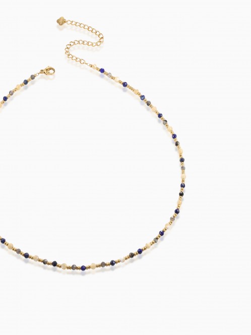 Matière : Fil, Acier d'or, Pierre semi-précieuse, Lapis Lazuli, Labradorite, Nacre
