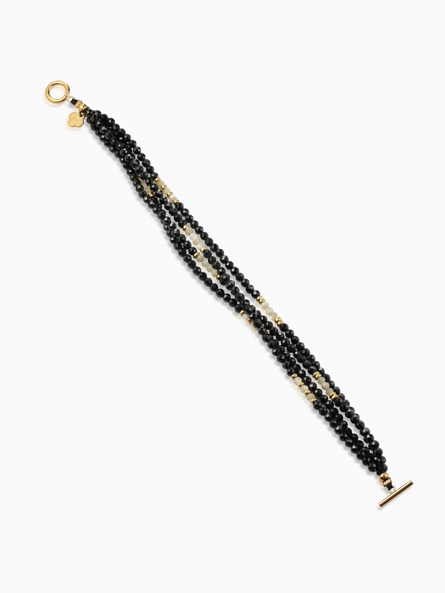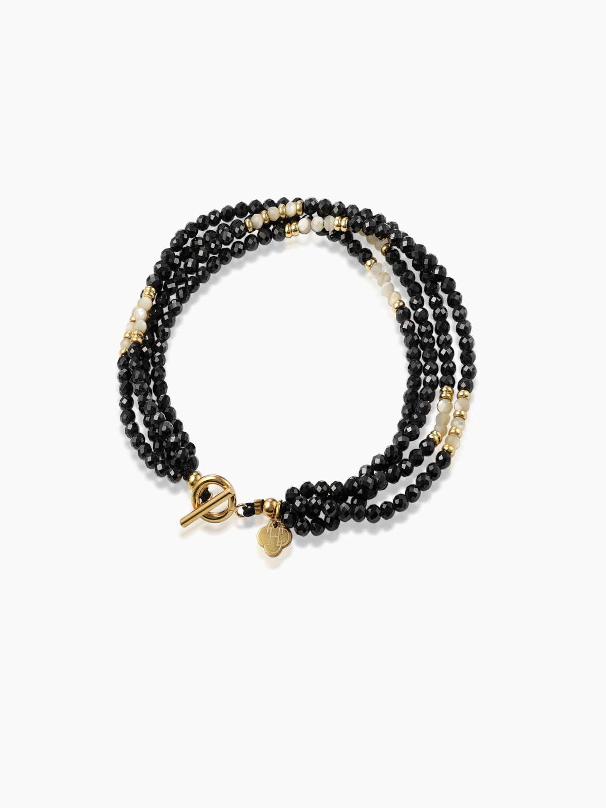 Matière : Acier doré, Fil, Pierre semi-précieux, Onyx, Nacre