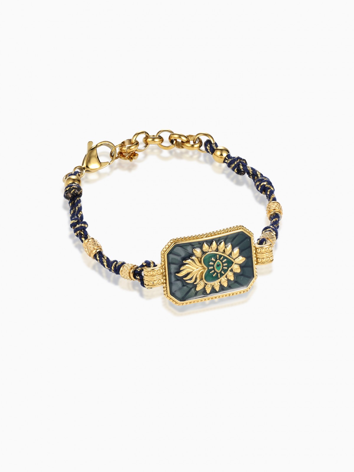 The Avelie bracelet combines a multicolored braided cord with a central gold-tone sun motif. The combination creates a vibrant harmony between the handcrafted feel of the cord and the refined engraved medallion. A delicate, radiant piece full of character.