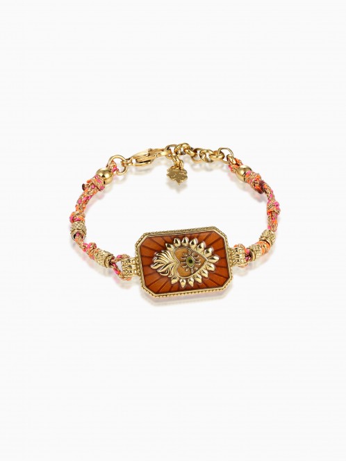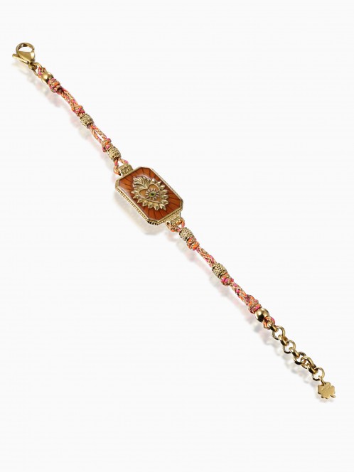 The Avelie bracelet combines a multicolored braided cord with a central gold-tone sun motif. The combination creates a vibrant harmony between the handcrafted feel of the cord and the refined engraved medallion. A delicate, radiant piece full of character.