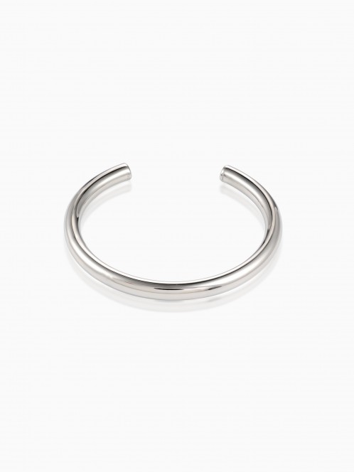 A half-open bangle in silver-tone stainless steel, with a clean and timeless design. Its minimalist silhouette gently hugs the wrist, adding a touch of subtle modernity to any outfit. A chic and understated essential, to be worn alone or stacked with others.