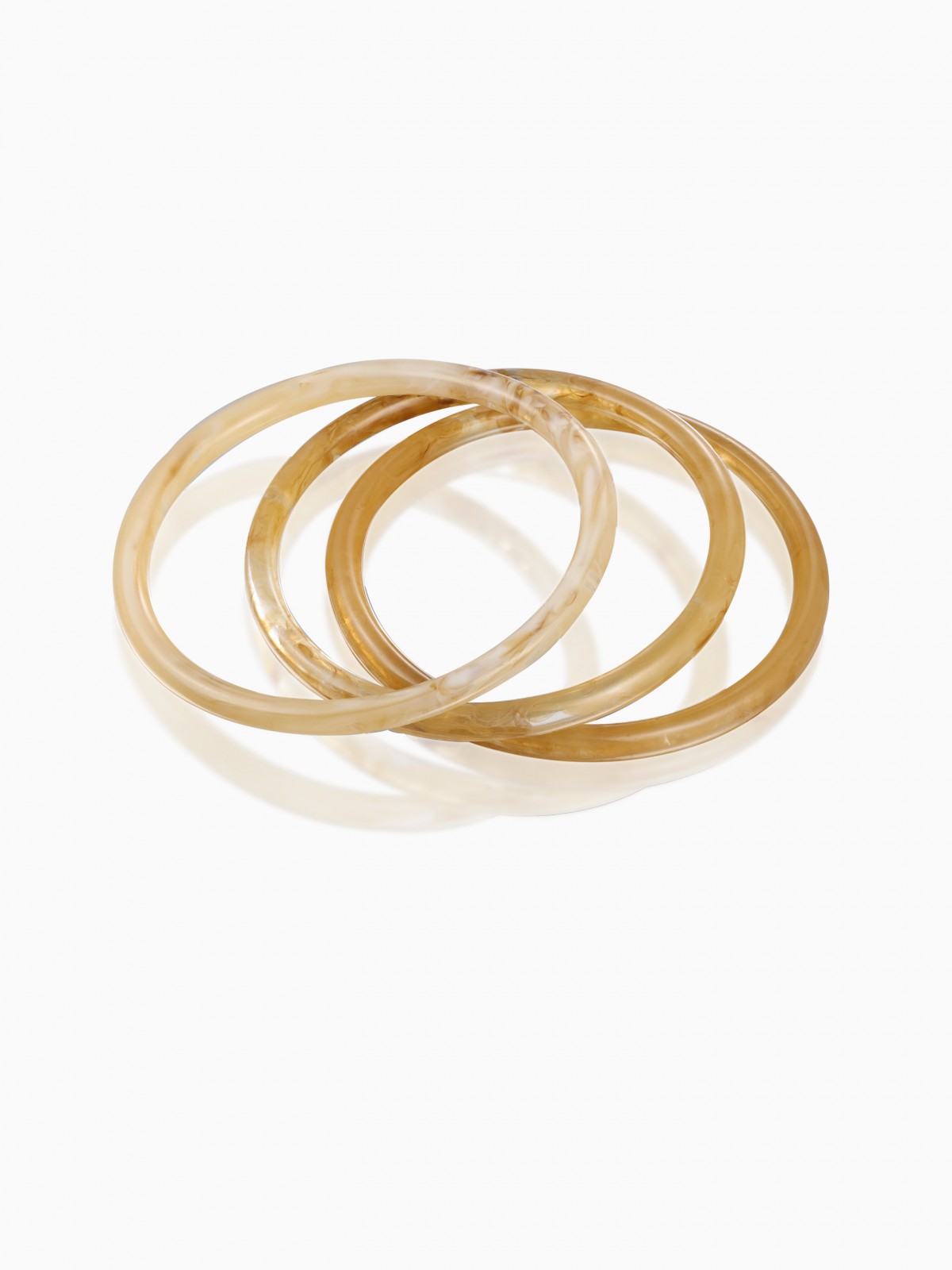 A resin bangle with a raw, organic look. Its simple shape contrasts with its textured irregularities that evoke natural, almost mineral movements. Lightweight on the wrist, it adds a relaxed and modern touch to your layered looks. An essential with understated charm, perfect for any occasion.