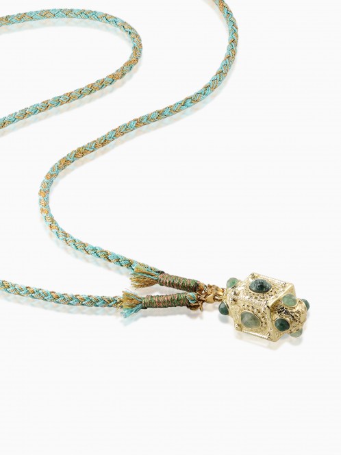 Material : Gold-plated steel, Thread, Semi-precious stone, Green strawberry quartz, Turquoise africaine.
