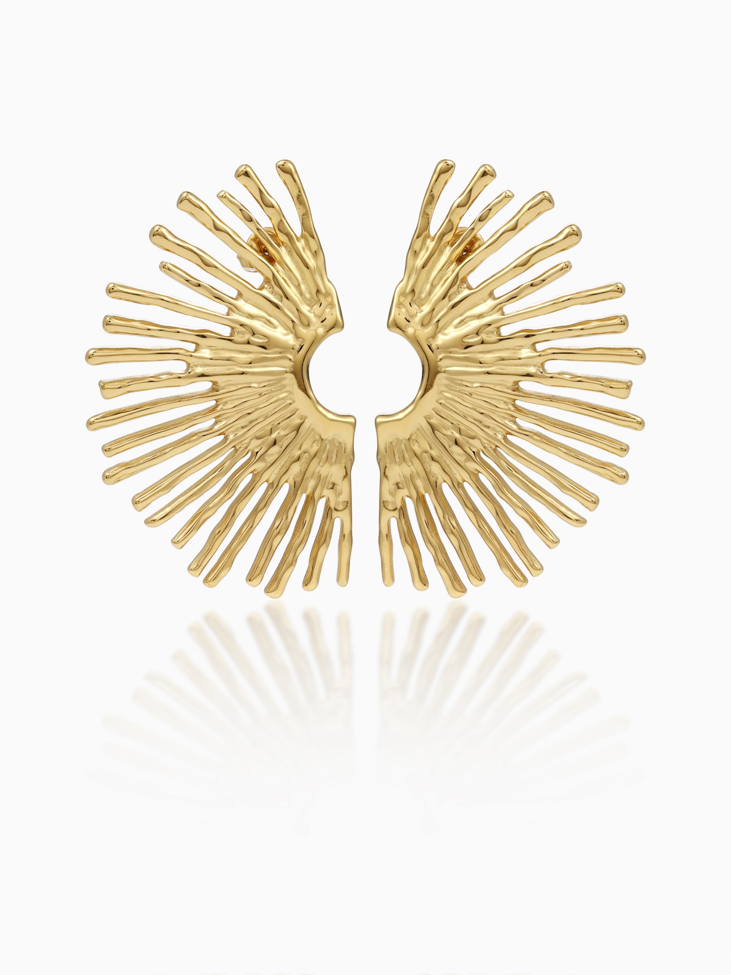 These silver earrings play on the balance between structure and lightness. A hammered, round base cradles an openwork, organic shape, offering a subtle contrast of textures. Their graphic and airy design makes them a statement piece, while remaining easy to wear every day.