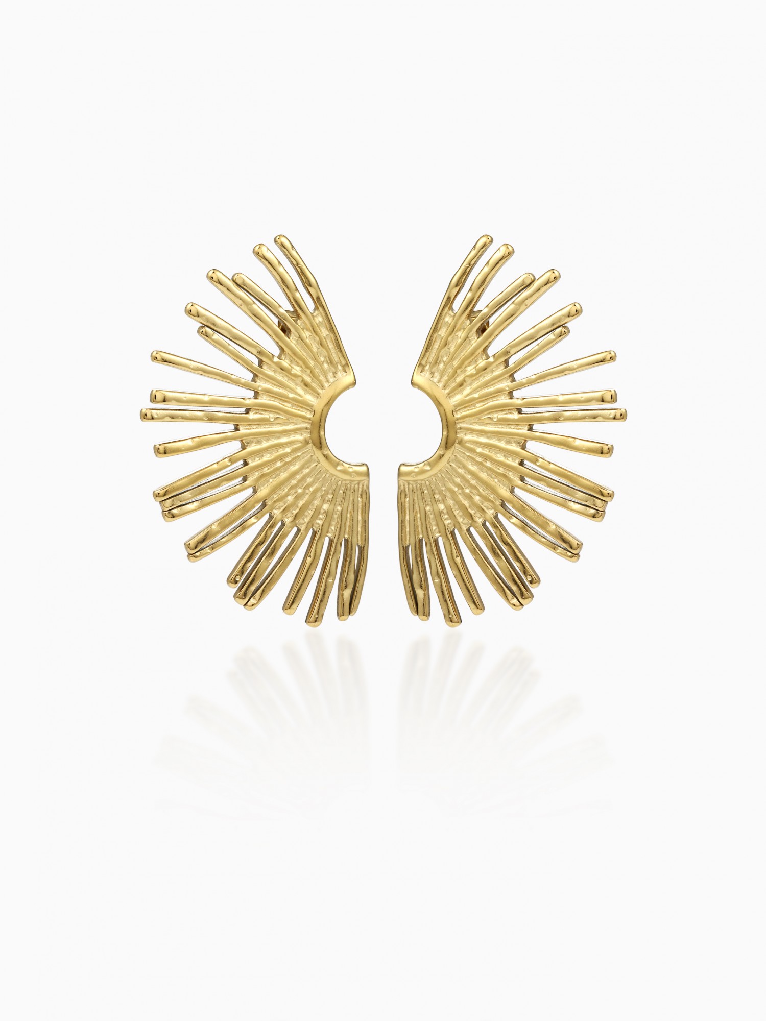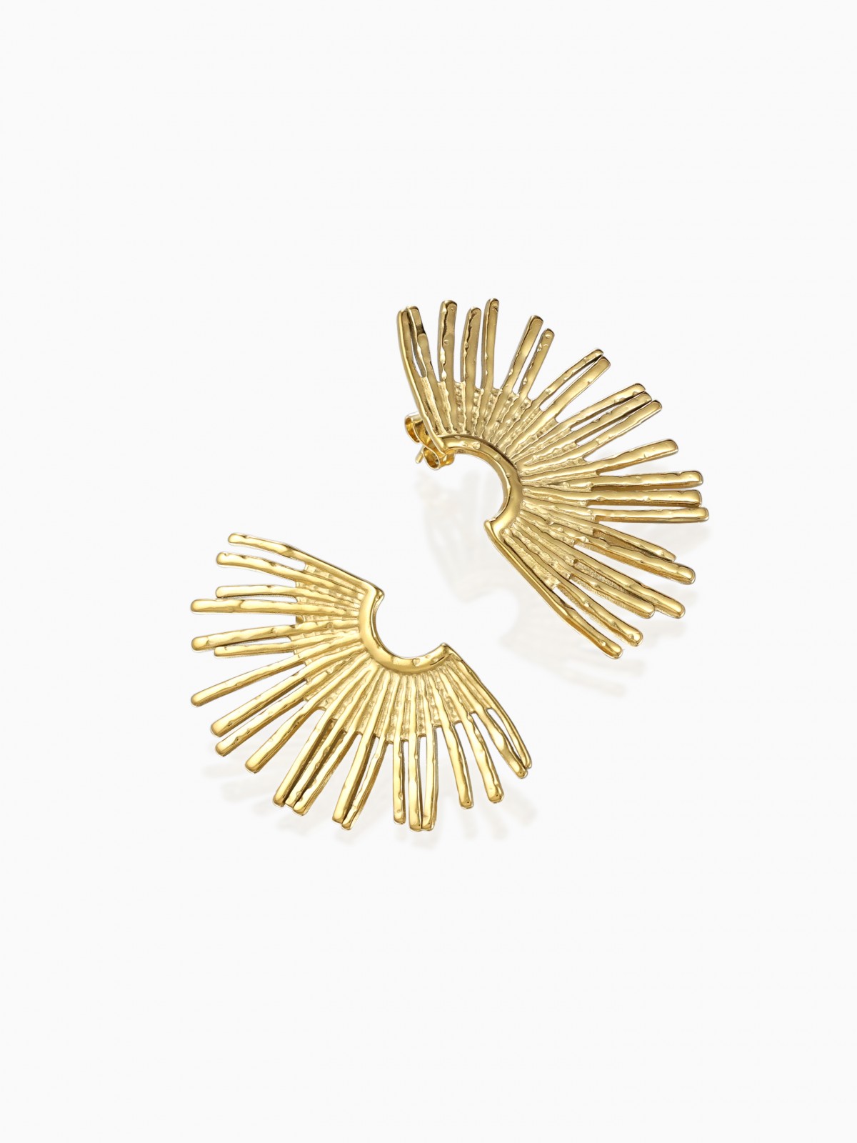 These silver earrings play on the balance between structure and lightness. A hammered, round base cradles an openwork, organic shape, offering a subtle contrast of textures. Their graphic and airy design makes them a statement piece, while remaining easy to wear every day.