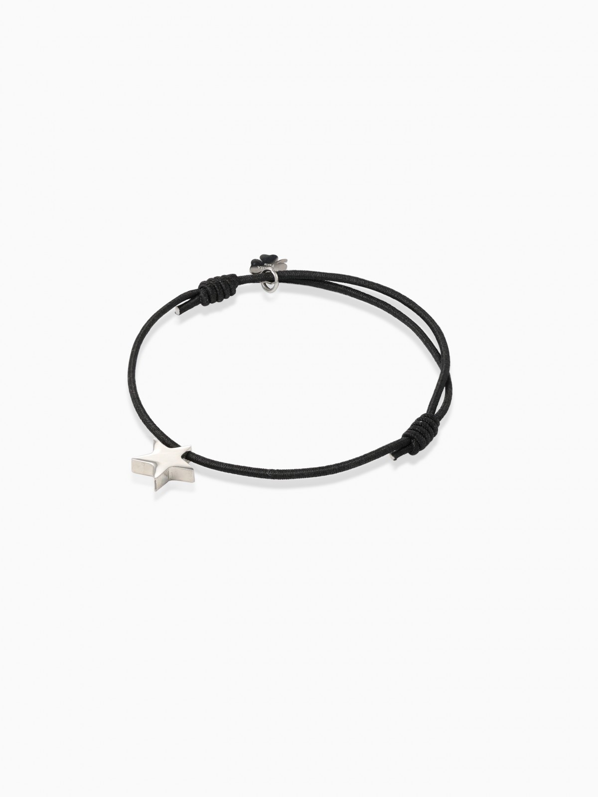 Adorned with a five-pointed silver star, the Aenya bracelet illuminates the wrist with simplicity and brilliance. Its shimmering cord and adjustable design make it a discreet and radiant piece of jewelry, perfect for wearing alone or stacked with other bracelets. A star to keep close, like a precious wish.