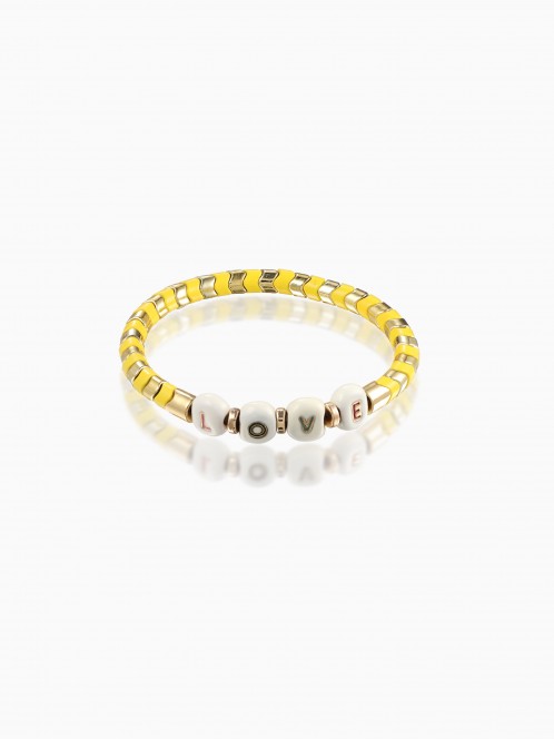 The Velina bracelet captivates with its colorful beads delicately combined with luminous gold accents. At its center, charming letter beads spell out a symbolic word, like a sweet message to wear every day. A modern and joyful piece of jewelry, perfect for adding a touch of color and personality to your outfits.