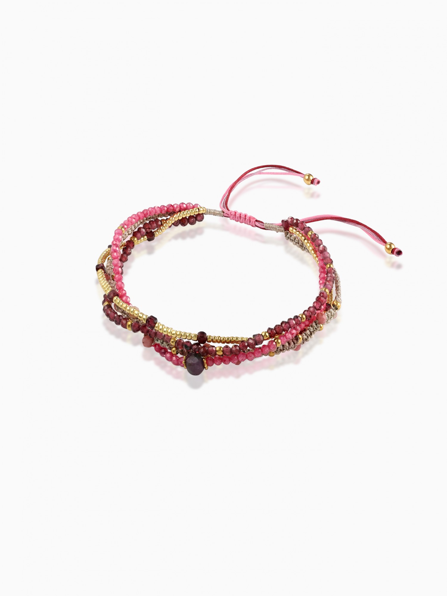 The Nyselle bracelet captivates with the harmony of its delicately arranged pink and gold-hued beads. Its multi-strand design adds a touch of bohemian radiance to the wrist. A refined and colorful piece of jewelry, perfect for brightening up your everyday outfits.